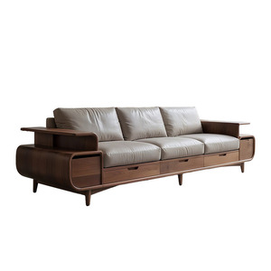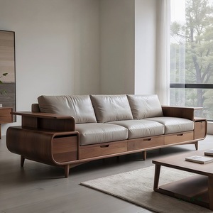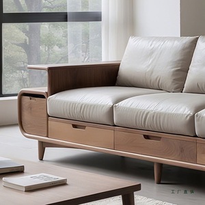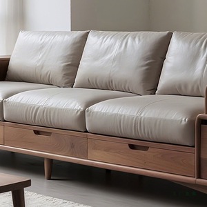 新中式实木沙发黑胡桃木简约现代轻奢皮艺长直排沙发带储物功能无