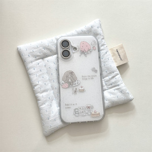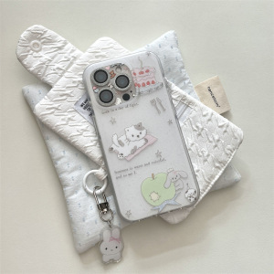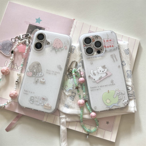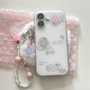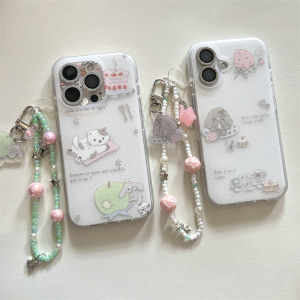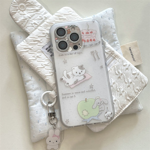 可爱草莓蛋糕兔子猫咪插画适用iPhone16苹果15ProMax/14/13手机壳