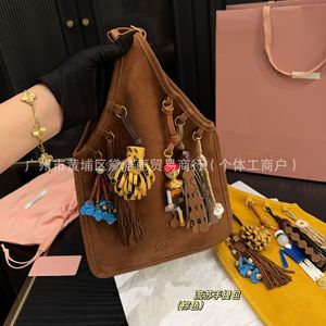 2025春秋新款麂皮绒真皮流苏手提包小众设计玩偶潮流个性手拎包女