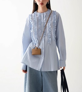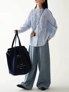 Babymoon 荷叶边小众气质蓝色衬衫长袖春秋新款宽松设计感上衣女