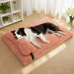 带枕头短毛绒宠物狗窝菠萝格PP棉秋冬季保暖可拆洗加厚宠物狗垫子