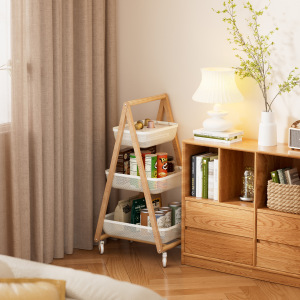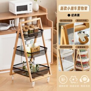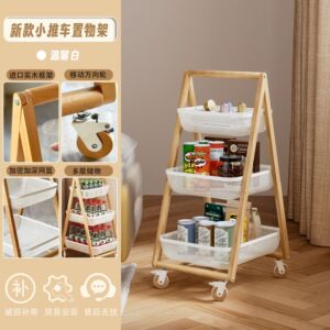 跨境亚马逊实木可移动小推车家用储物架零食架子厨房置物架收纳架