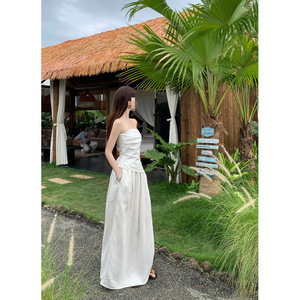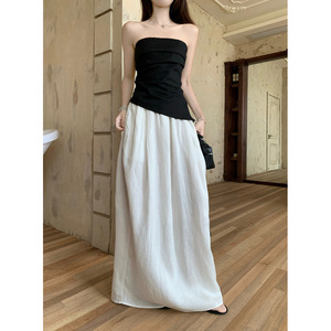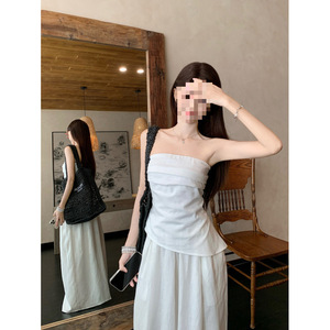 kumikumi设计感黑色褶皱抹胸背心上衣女夏季显瘦半身裙长裙两件套