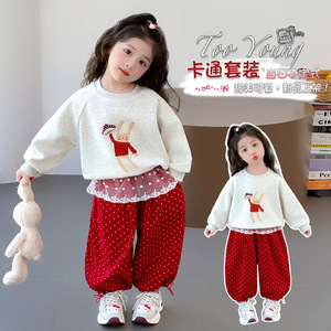 春秋季时尚洋气女童圆领2025新款儿童两件套童装中小童套装宝宝