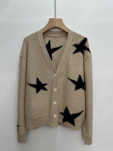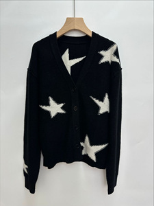 ZV25秋冬新款羊绒V领单排扣开衫重工挂毛五角星撞色针织衫毛衣女
