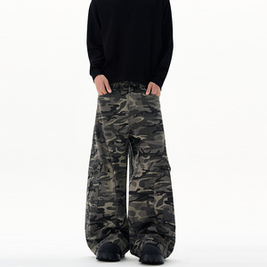 LKTM男装 美式设计感多口袋弯刀迷彩工装裤男女baggy廓形拖地长裤