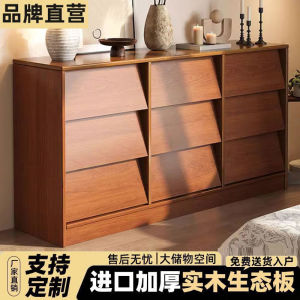 实木餐边柜一体靠墙收纳柜斗柜家用客厅茶水柜中古风柜子储物柜