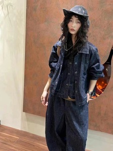 2025秋季新款复古做旧点点雪花蓝牛仔外套女宽松休闲百搭上衣