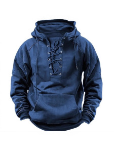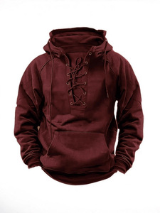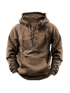 跨境春秋季新款男式复古抽绳连帽衫多口袋青年男士大码宽松套头衫