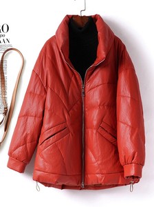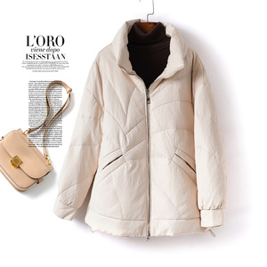 羽绒服女常规立领米白色韩版宽松眞皮外套新款海宁白鸭绒绵羊皮衣