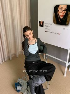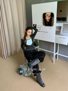 CXI 黑色西装裤女秋季新款显瘦直筒裤修身阔腿裤小个子休闲拖地裤