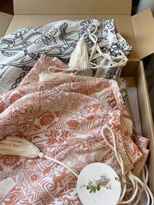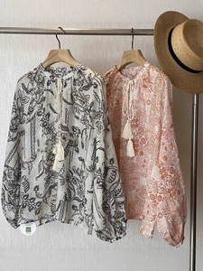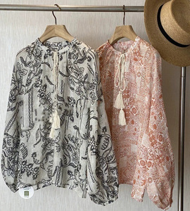炒美!!像艺术品一样,设计师的气息~宽松凉爽亚麻印花系带衬衫