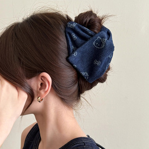 kitty猫可爱蝴蝶结牛仔布艺三角抓夹女后脑勺发夹鲨鱼夹头饰发饰