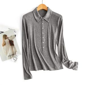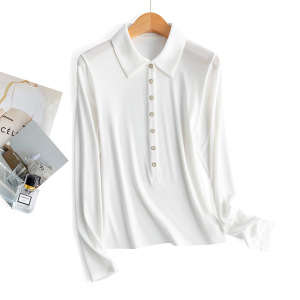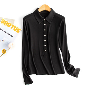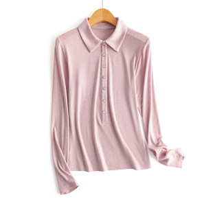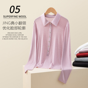 25秋季新款女装POLO领长袖T恤羊毛莱赛尔翻领保暖7粒扣打底衫上衣