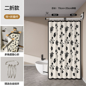 加厚隐形折叠浴帘杆家用速干洗澡隔断帘卫生间防水布干湿分离浴帘