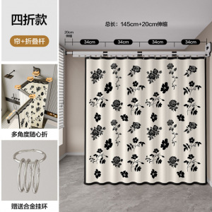 白色四折吸盘杆+素影小花帘宽150*200☆✓