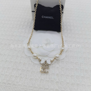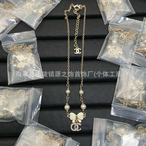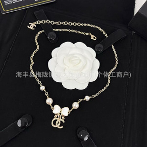 小香新款25p高版本滴胶蝴蝶结双C项链女高级感镶钻珐琅珍珠锁骨链
