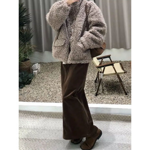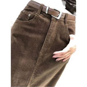 咖色灯芯绒半身裙女秋季新款大码高腰气质百搭休闲开叉直筒裙