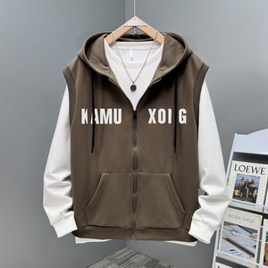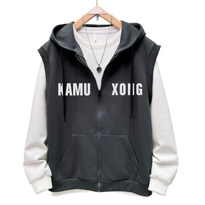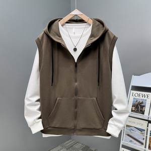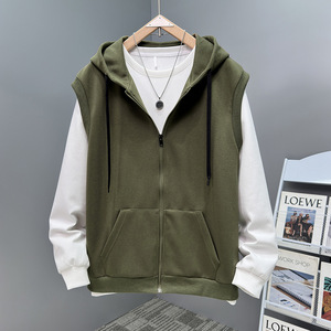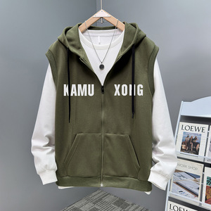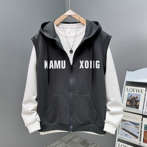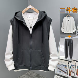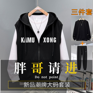 秋季加肥加大码休闲套装男运动裤宽松连帽马甲肥佬潮胖卫衣两件套