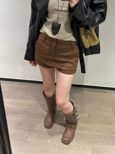 美式复古风时尚高腰显瘦麂皮绒裙裤女2025秋冬内搭半身裙