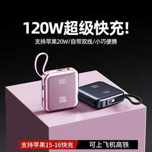 跨境120W迷你充电宝2万毫安大容量带线PD20w快充户外移动电源定制