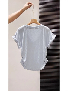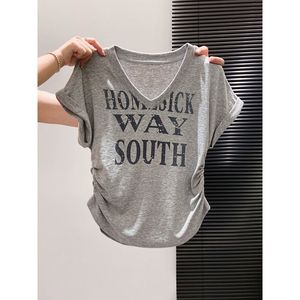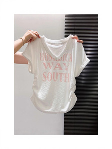 白色字母短袖t恤女夏季美式ins超火别致抽绳设计感小众短款上衣潮