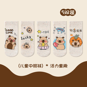 萌趣可爱儿童袜子创意卡皮巴拉男童中筒袜秋冬新品女童宝宝卡通袜