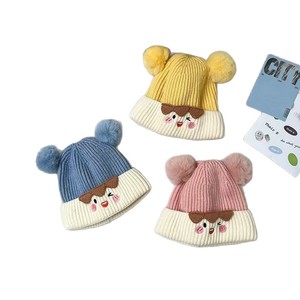 宝宝帽子秋冬季可爱毛球套头帽婴幼儿针织毛线加厚护耳男女超萌潮