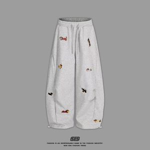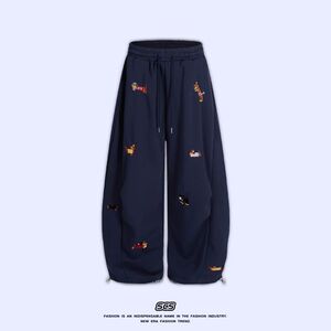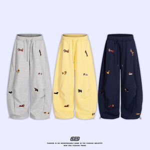 JIUAN /美式腊肠狗刺绣弯刀卫裤男女hiphop高街宽松阔腿运动裤子