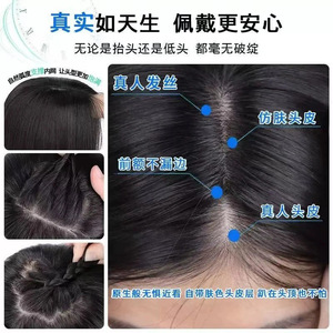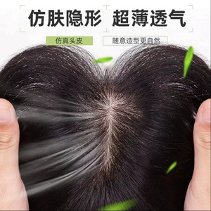 [8x12]透气双递针隐形全真发一片式假发仿真头皮遮白发头顶补发片
