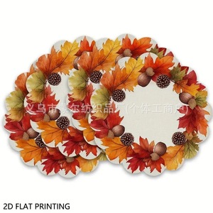 跨境temu热卖秋季餐垫农家乐感恩节餐桌装饰枫叶南瓜圆形餐桌垫