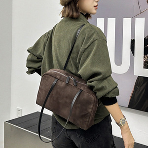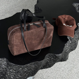 波士顿真皮大包2025新款极简风复古保龄球包大容量牛皮手提单肩包