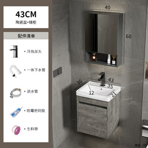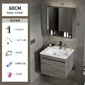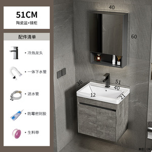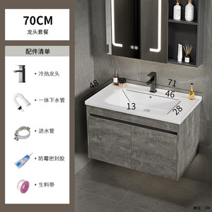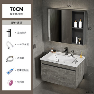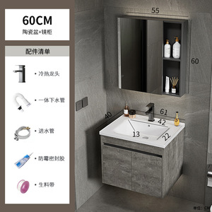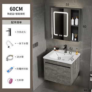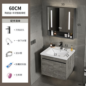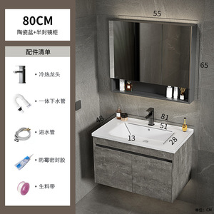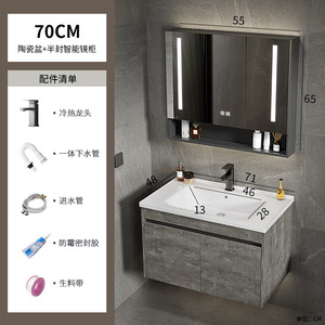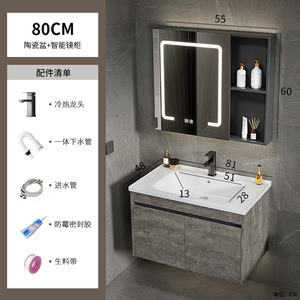 高级灰柜体+陶瓷一体盆+智能镜柜