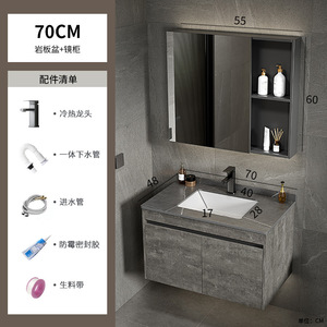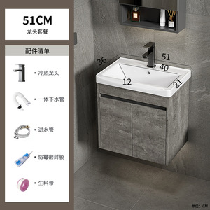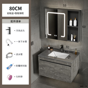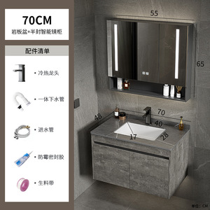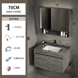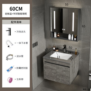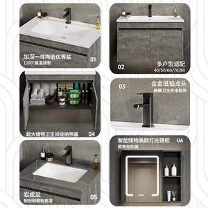 轻奢岩板太空铝浴室柜组合洗脸盆台面一体陶瓷盆卫生间阳台洗手盆