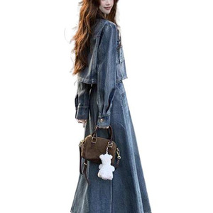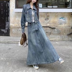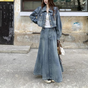 复古气质牛仔套装女春季2025新款宽松显瘦长袖外套大摆长裙两件套