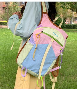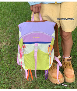 2025新款拼色防水户外双肩包女轻量化旅行背包潮流休闲登山背包