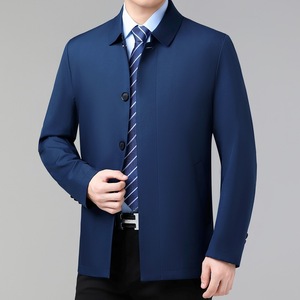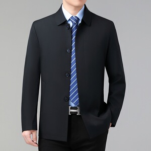 春秋季桑蚕丝夹克男中老年爸爸装薄款上衣翻领商务扣子款免烫外套