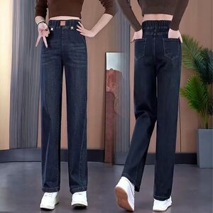直筒牛仔裤女2025新款春秋季高腰显瘦版宽松松紧洋气遮肉阔腿裤子