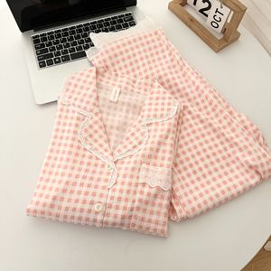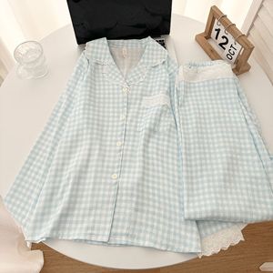 云朵棉睡衣女款春秋季韩版甜美公主风格子花边长袖休闲家居服套装