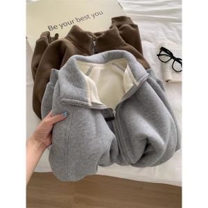 冬季小暖炉!加厚羊羔绒卫衣外套女通勤百搭保暖休闲立领拉链开衫