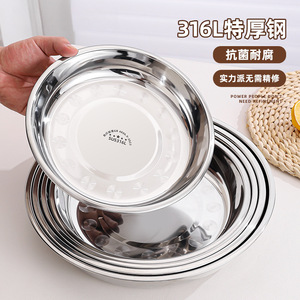 316不锈钢盘子圆盘食品级菜盘碟子家用餐盘蒸盘加厚备菜盘铁菜碟