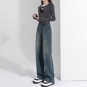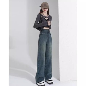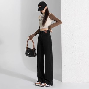 2025新款爆款春秋直筒显瘦窄版阔腿牛仔裤女小个子高腰宽松直筒