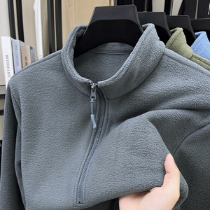2025秋冬新款加绒加厚摇粒绒外套男保暖抓绒立领半拉链休闲卫衣