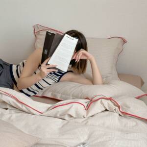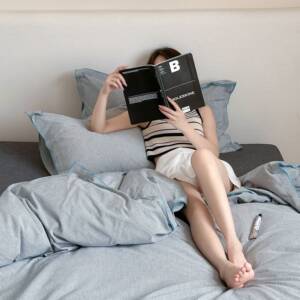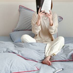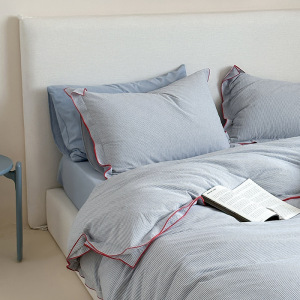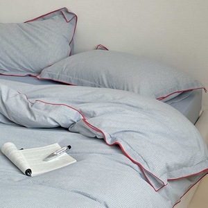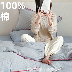 a类母婴级色织密拷边纯棉细条纹四件套全棉简约亲肤被套床单床品