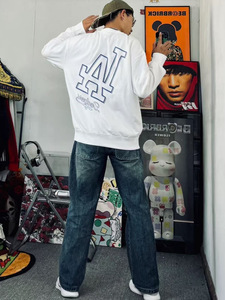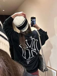 MLB潮牌洋基队情侣秋冬新款大LOGO圆领立体印花宽松舒适套头卫衣