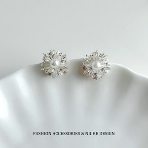 璀璨蒲公英烟花锆石珍珠耳钉气质轻奢高级感精致小众温柔耳环耳饰