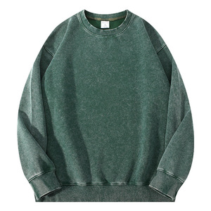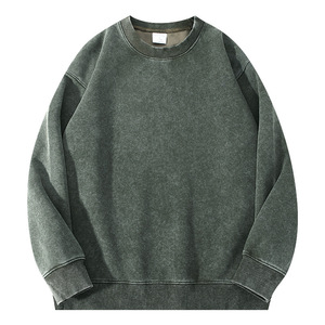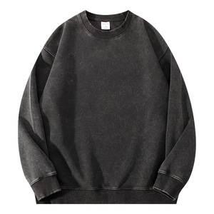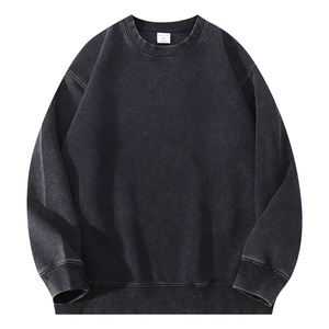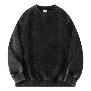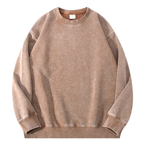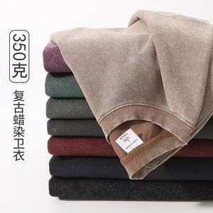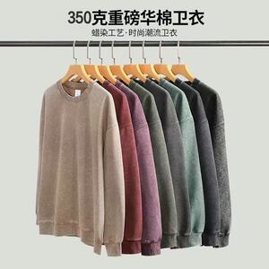 现货350克重磅水洗做旧圆领卫衣落肩宽松长袖卫衣纯色百搭打底衫