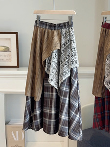 设计感叠穿不规则撞色格子半身裙2025秋冬女新款裙子中长裙半裙