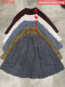 亚麻半身裙2025秋新款女松紧腰气质大摆长裙百搭裙子