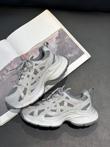 真皮厚底老爹鞋女2025秋新款百搭增高轻便透气网面松糕休闲运动鞋